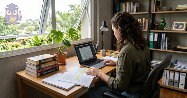 Não há prazo. Você estuda no seu próprio ritmo, sem pressão ou cobrança.
